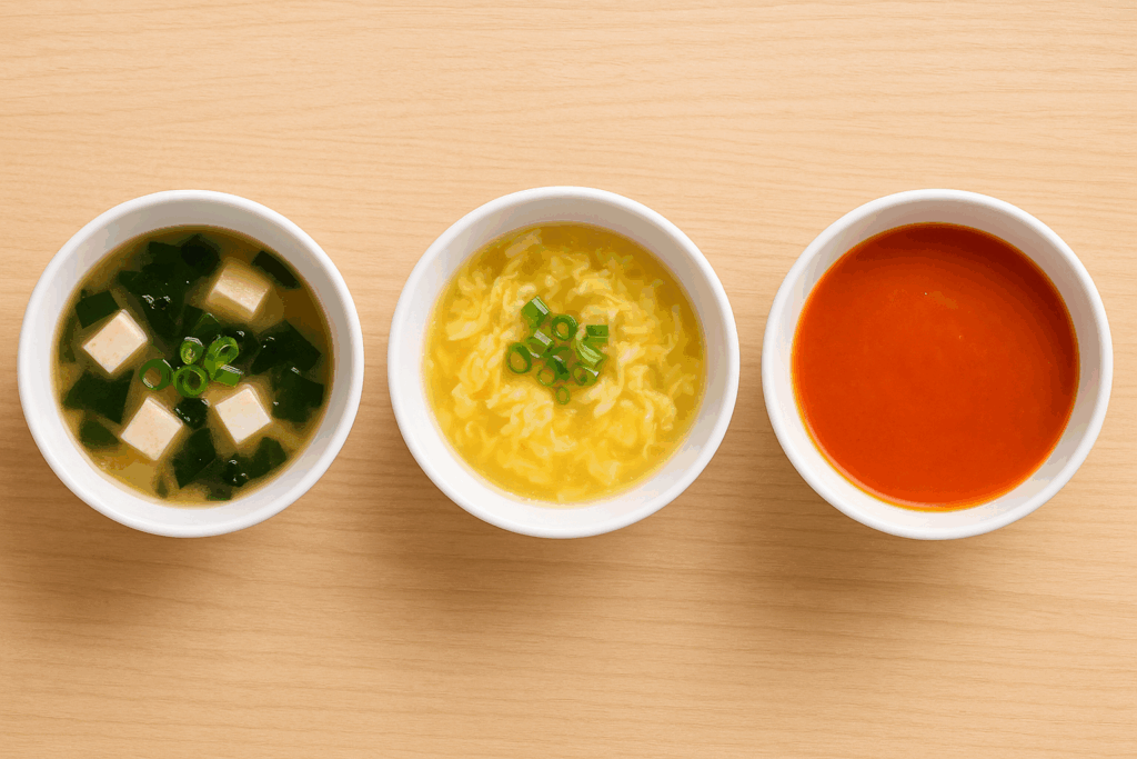 王道の安心感。だしにもやしをさっと煮て、火を止めて豆腐と乾燥わかめを入れ、味噌を溶くだけ。仕上げにねぎをひとつまみ。コスト最軽量で満足度が高い一杯だよ。